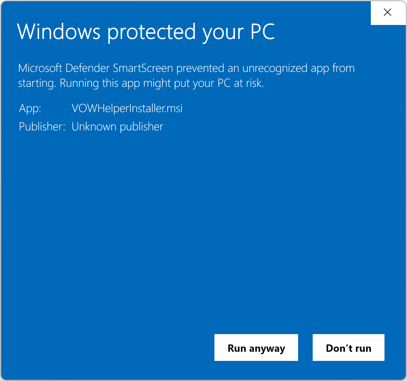 Windows might object to you running the helper installer because it doesn't trust it. You might see this: